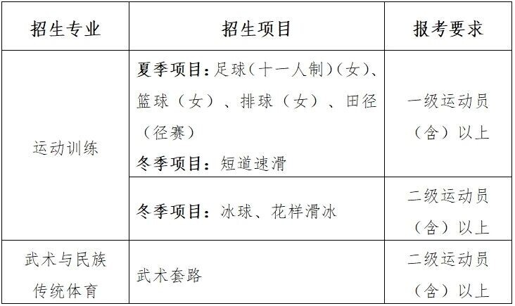 (二)具备我校运动训练、武术与民族传统体育专业招生项目规定的运动员技术等级称号。